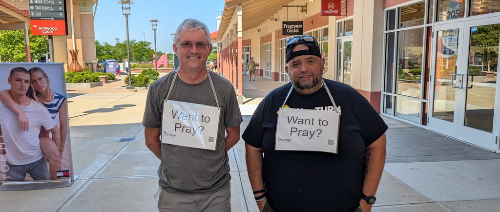 Yesterday, Abdo and I visited the outlet mall, seeking opportunities to pray for and share Jesus' love with others. As we walked through the corridors, we had two encounters with individuals named Scott. The first conversation was a chance to encourage each other in our shared work, while the second was brief but resulted in a request for prayer. We also received appreciation from others who valued our efforts to spread God's message of hope and love. It was a reminder that every opportunity counts, whether it's at a mall or in everyday conversations. We were blessed to be able to share God's love with others and look forward to continuing to do so in the future.